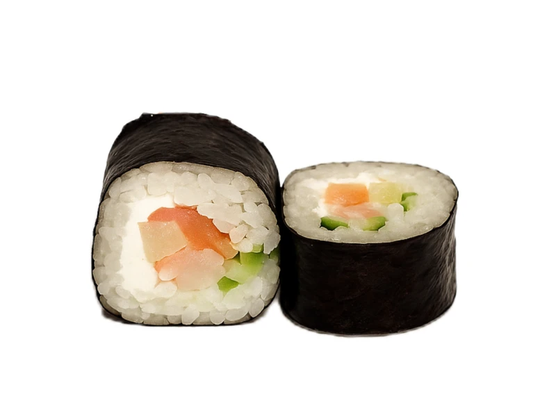 рис, нори, сыр сливочный, бекон, омлет, креветка, огурец