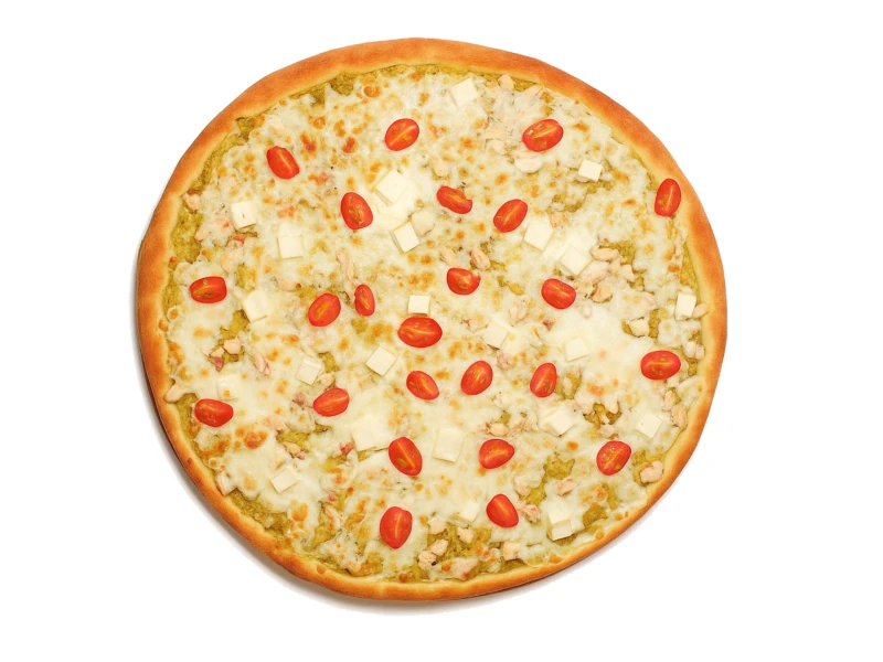 тесто, куриное филе, сыр фета, черри, моцарелла, соус песто