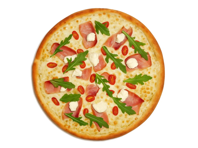 тесто, прошуто, черри, руккола, сыр творожный, моцарелла, соус дзазыки