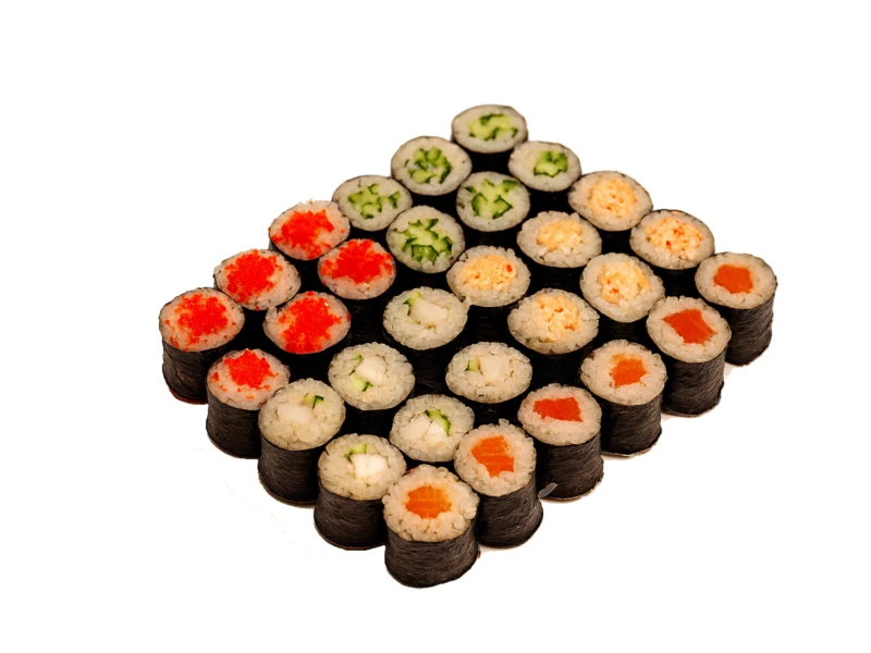 ролл креветка, ролл лосось, ролл снежный краб, ролл тобико, ролл огурец