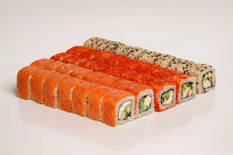 филадельфия, филадельфия в кунжуте, калифорния с креветкой, калифорния с крабом